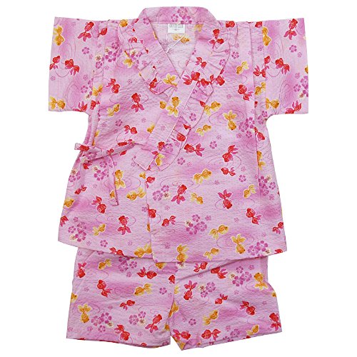 《盛夏 甚平》(ジンベイ) 日本製ベビー女児 リップル生地金魚と渦巻甚平スーツ 80cm/PK NO.OG-75576