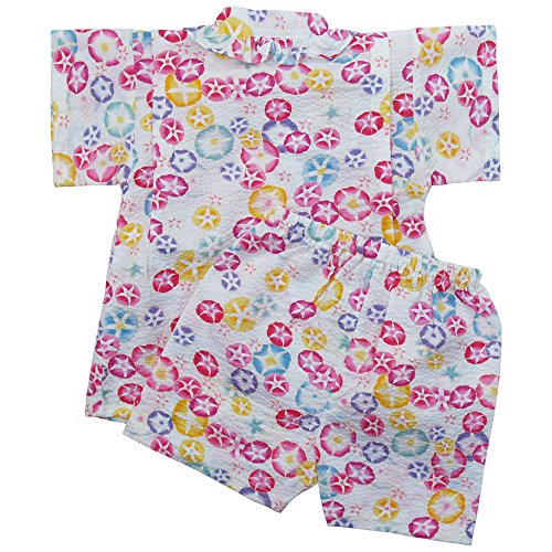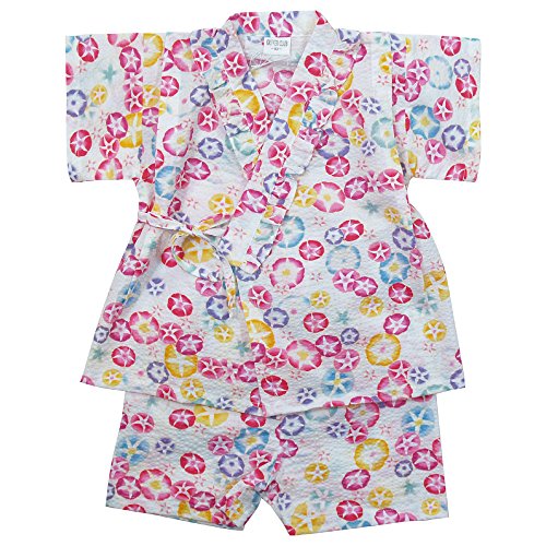 《盛夏 甚平》(ジンベイ) 日本製ベビー女児 リップル生地朝顔総柄甚平スーツ 95cm/OW NO.OG-75571