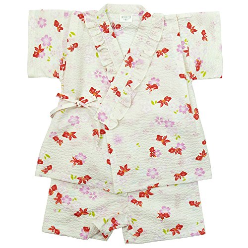 《盛夏 甚平》(ジンベイ) 日本製ベビー女児 リップル生地金魚総柄甚平スーツ 95cm/OW NO.OG-75570