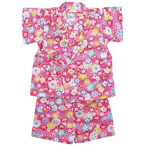 《盛夏 甚平》(ジンベイ) 日本製ベビー女児 リップル生地朝顔総柄甚平スーツ 80cm/PK NO.OG-75571