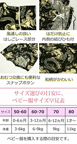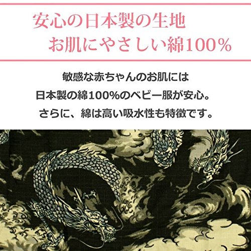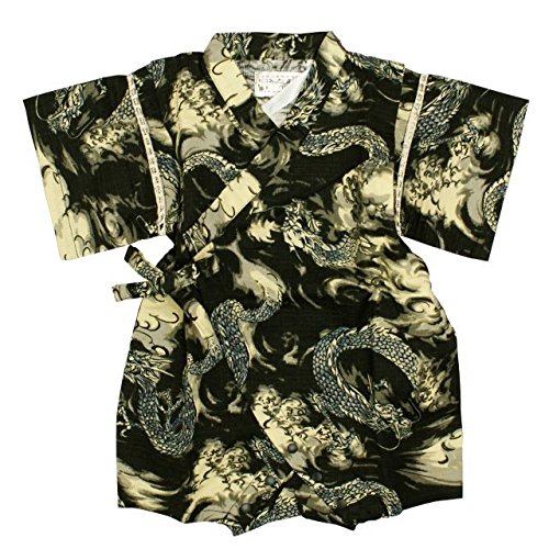 甚平 ロンパース ベビー 男の子 綿100% 日本製生地 龍 和柄 じんべい ロンパース 甚平 ブラック 70cm