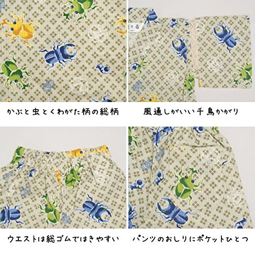 甚平 ベビー 男の子 かぶと虫とくわがた昆虫柄 プリント 綿100% 和柄 甚平スーツ(じんべい) ベージュ 95cm