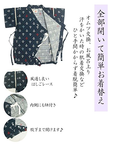 甚平 ロンパース ベビー 男の子 綿100% 日本製生地 グレコ カバーオール マリン/紺-1014 80cm