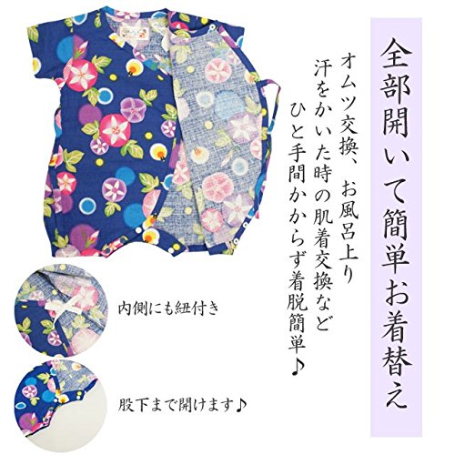 甚平 ロンパース ベビー 新生児 女の子 綿100% 日本製生地 グレコ 朝顔/紺-9754 60-70cm