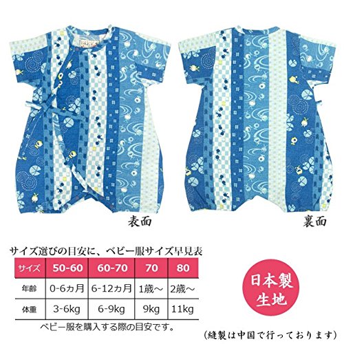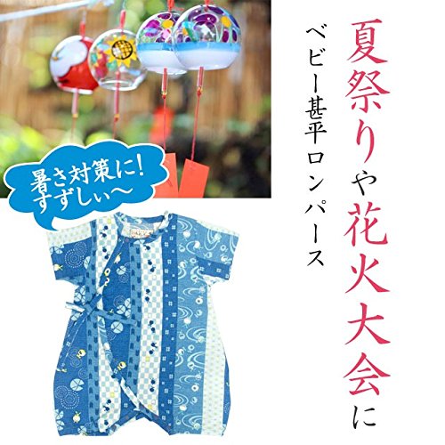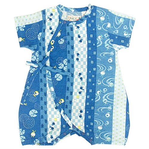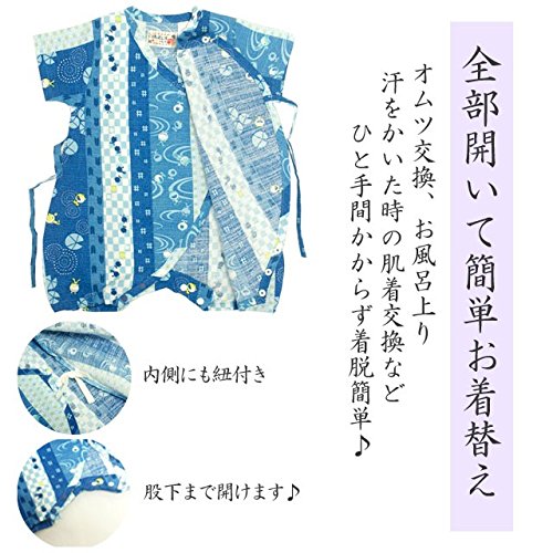 甚平 ロンパース ベビー 新生児 男の子 綿100% 日本製生地 グレコ カエル/紺-1011 50-60cm