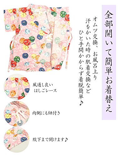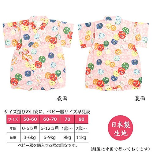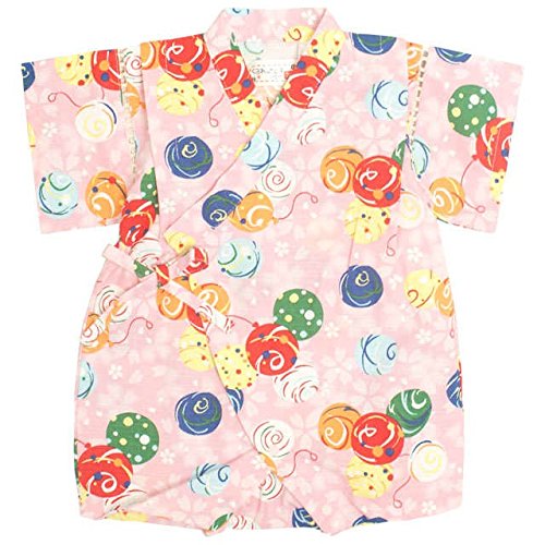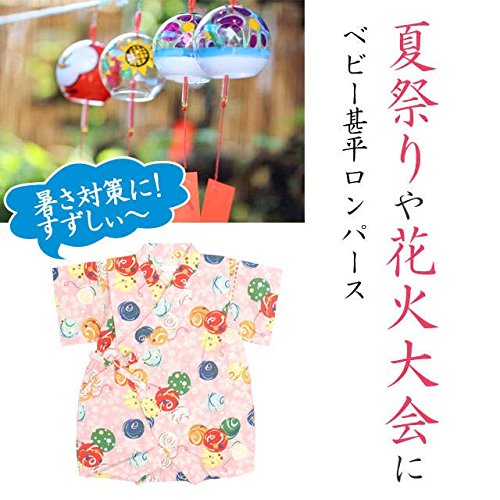 甚平 ロンパース ベビー 女の子 綿100% 日本製生地 グレコ カバーオール 水風船/ピンク-9771 80cm