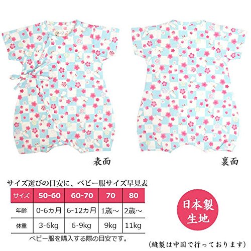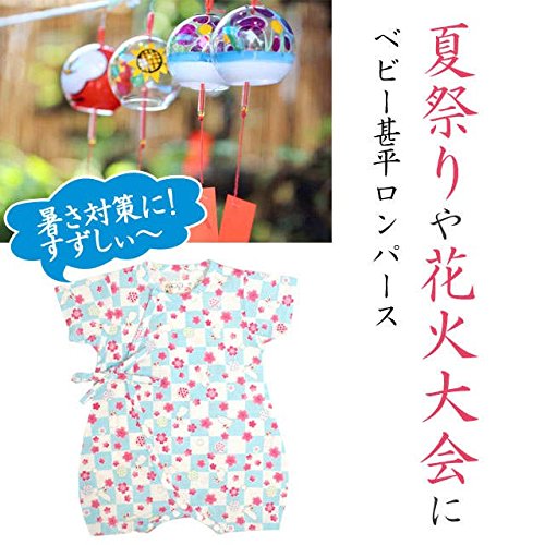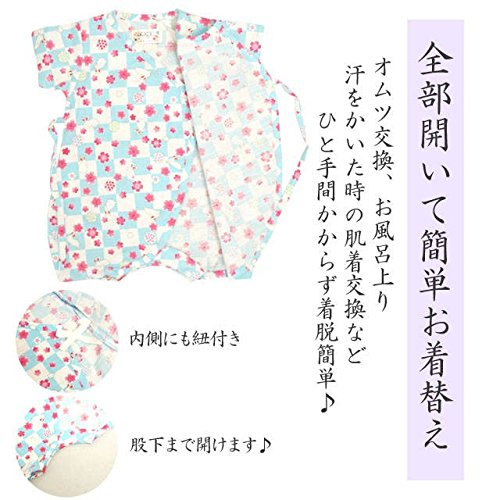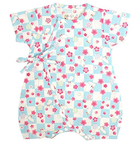甚平 ロンパース ベビー 新生児 女の子 綿100% 日本製生地 グレコ うさぎ/青-9753 60-70cm