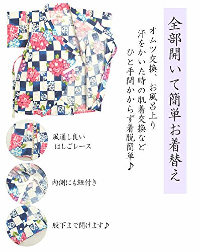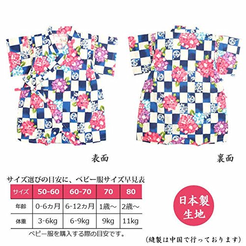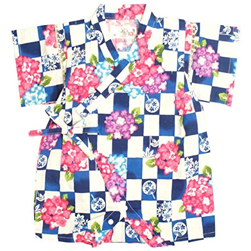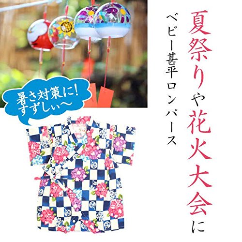 甚平 ロンパース ベビー 女の子 綿100% 日本製生地 グレコ カバーオール 紫陽花/紺-9779 70cm