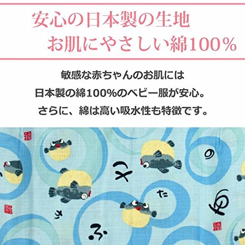 甚平 ベビー 男の子 綿100% 日本製生地 じんべい スーツ上下 祭 子供甚平 ふぐ/青-9471 90cm