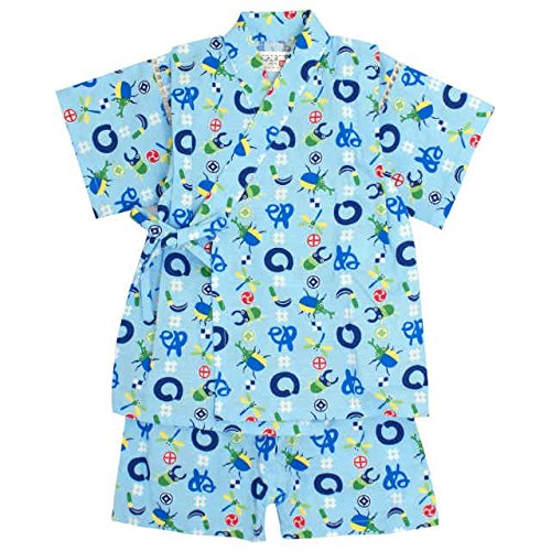 甚平 ベビー 男の子 綿100% 日本製生地 じんべい スーツ上下 祭 子供甚平 鎌輪ぬ/青-9786 90cm