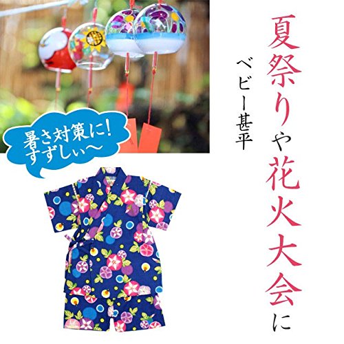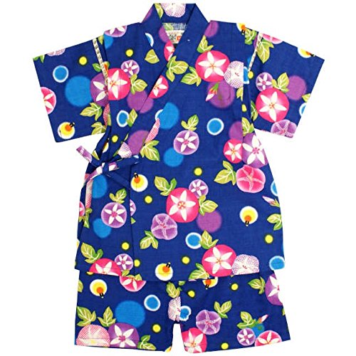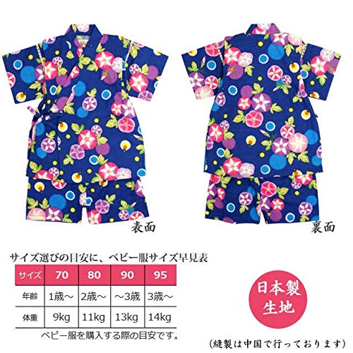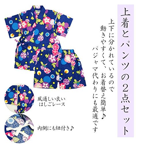 甚平 ベビー 女の子 綿100% 日本製生地 じんべい スーツ上下 祭 子供甚平 朝顔/紺-9812 90cm