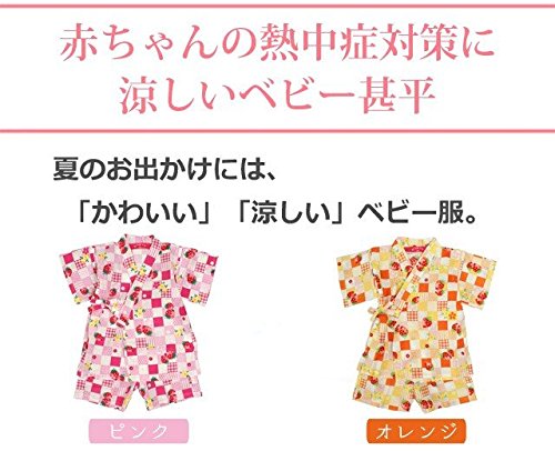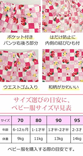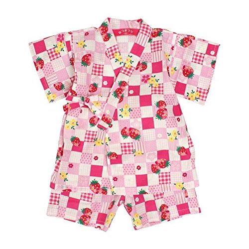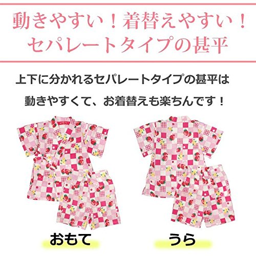 甚平 ベビー 女の子 綿100% いちご市松柄 じんべい スーツ上下 祭 子供甚平 ピンク 95cm