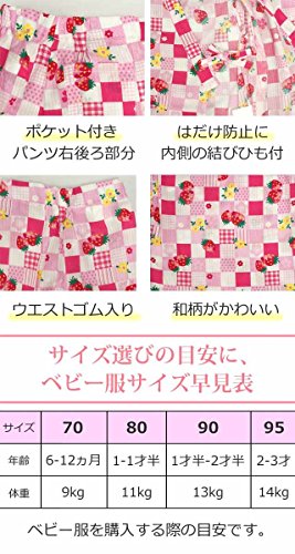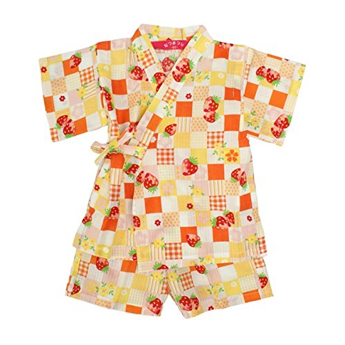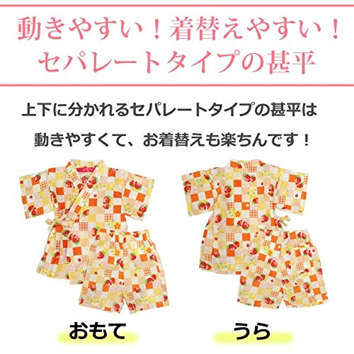 甚平 ベビー 女の子 綿100% いちご市松柄 じんべい スーツ上下 祭 子供甚平 オレンジ 95cm
