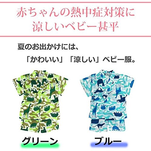甚平 ベビー 男の子 綿100% 動物カモフラ柄 じんべい スーツ上下 祭 子供甚平 グリーン 80cm
