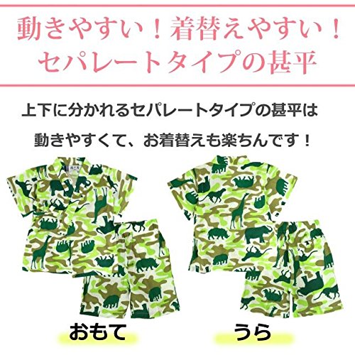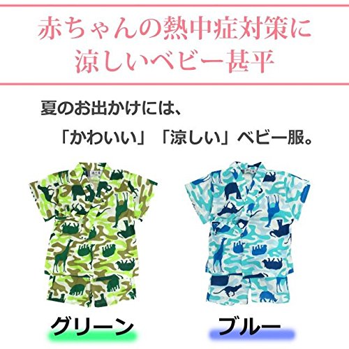 甚平 ベビー 男の子 綿100% 動物カモフラ柄 じんべい スーツ上下 祭 子供甚平 グリーン 95cm