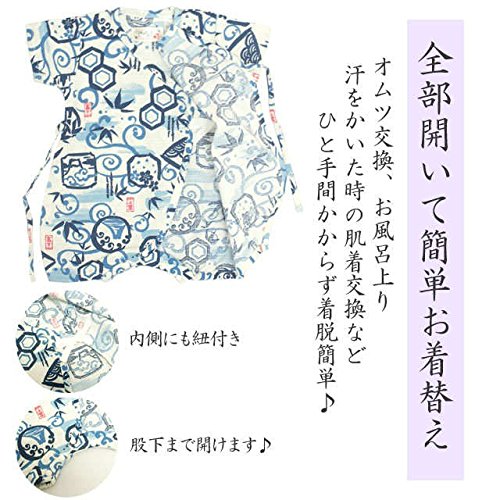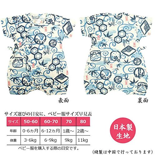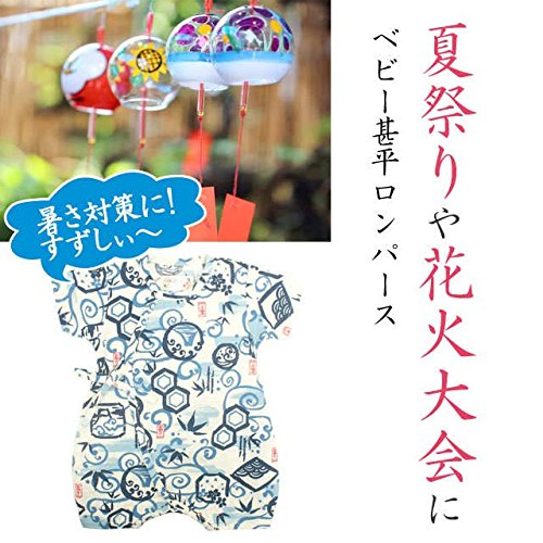 甚平 ロンパース ベビー 新生児 男の子 綿100% 日本製生地 グレコ 竹富士/白-9738 60-70cm