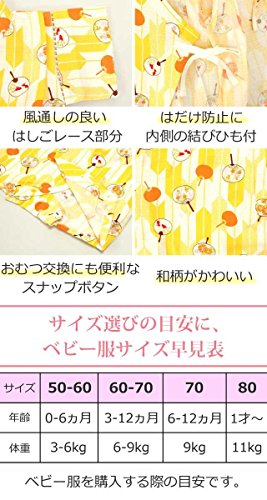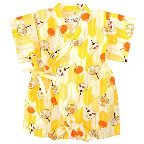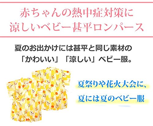 甚平 ロンパース ベビー 女の子 綿100% 日本製生地 グレコ カバーオール イエロー 70cm