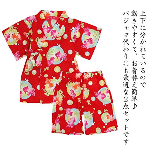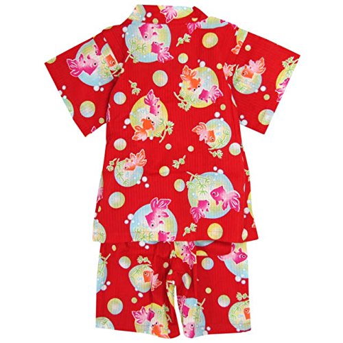 甚平 ベビー 女の子 綿100% 金魚柄 じんべい スーツ上下 祭 子供甚平 レッド 95cm