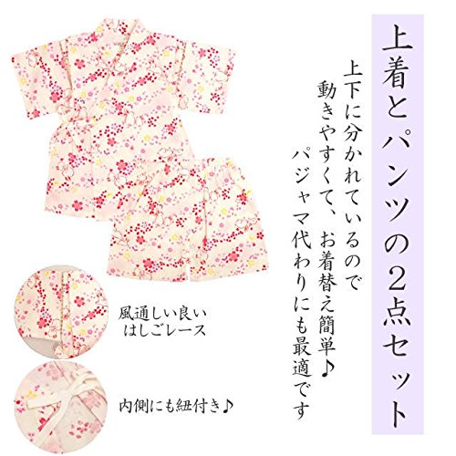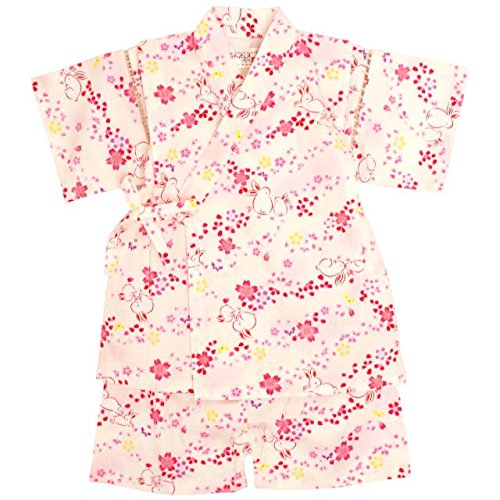 甚平 ベビー 女の子 綿100% 日本製生地 じんべい スーツ上下 祭 子供甚平 うさぎ桜/白-9813 90cm