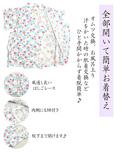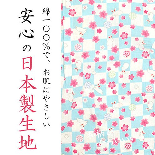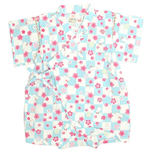 甚平 ロンパース ベビー 女の子 綿100% 日本製生地 グレコ カバーオール うさぎ/青-9778 80cm
