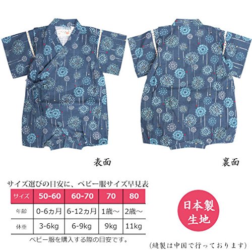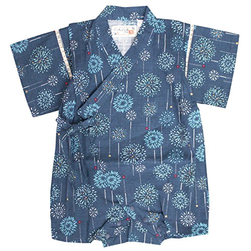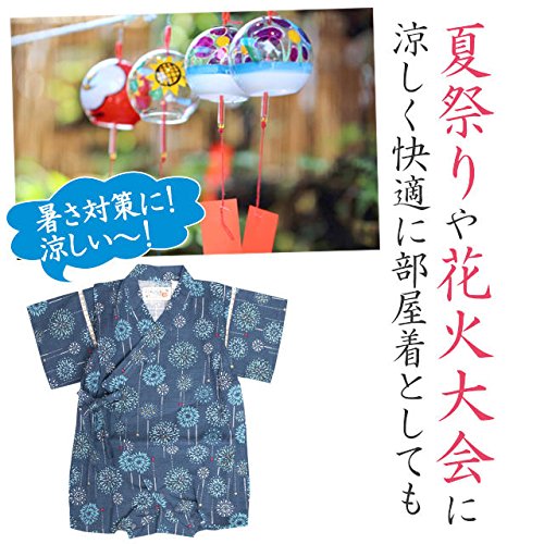 甚平 ロンパース ベビー 男の子 綿100% 日本製生地 グレコ カバーオール 花火/紺-9919 80cm