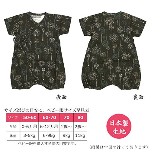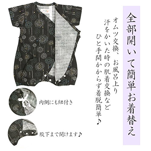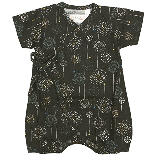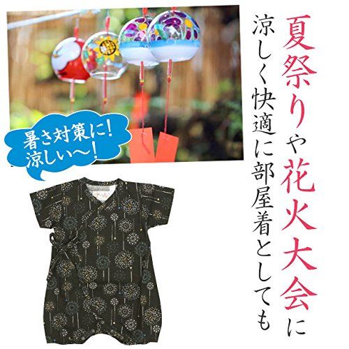 甚平 ロンパース ベビー 新生児 男の子 綿100% 日本製生地 グレコ 花火/黒-9887 60-70cm