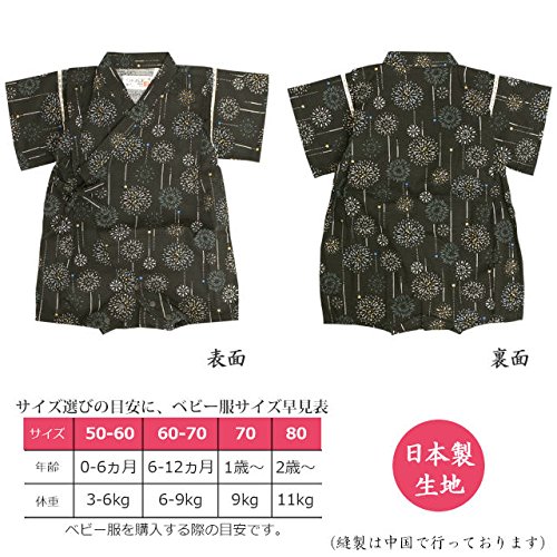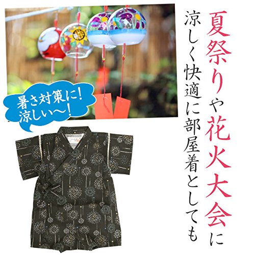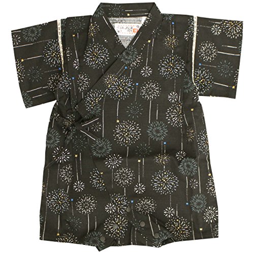 甚平 ロンパース ベビー 男の子 綿100% 日本製生地 グレコ カバーオール 花火/黒-9919 80cm