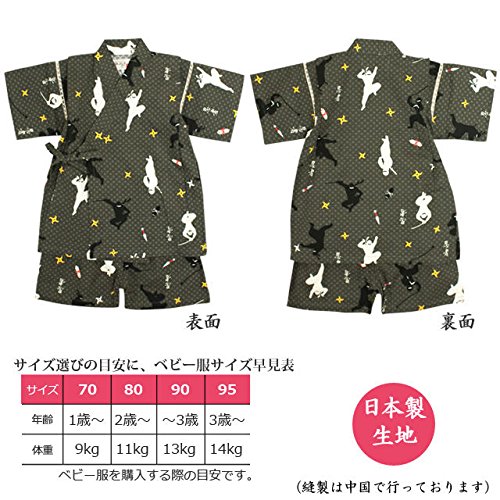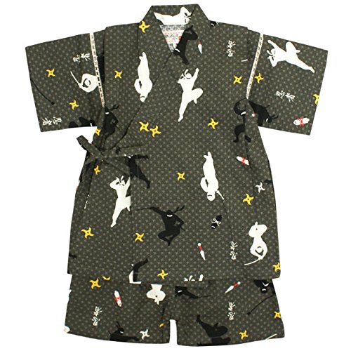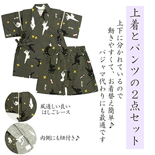 甚平 ベビー 男の子 綿100% 日本製生地 じんべい スーツ上下 祭 子供甚平 忍者/黒-9785 90cm