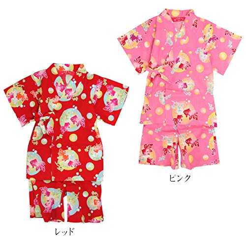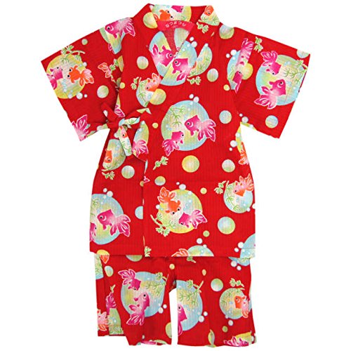 甚平 ベビー 女の子 綿100% 金魚柄 じんべい スーツ上下 祭 子供甚平 レッド 95cm