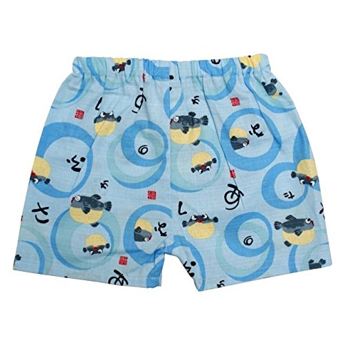 ベビー 甚平 男の子 じんべい ふぐ柄 日本製生地 和柄 綿100% スーツ上下 寝まき サックス 90