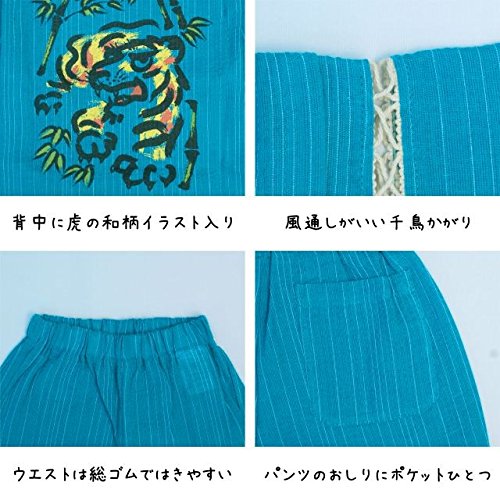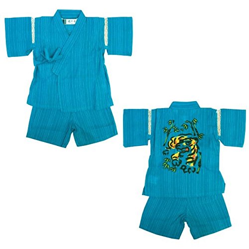 ベビー 甚平 男の子 じんべい 猛虎 とら タイガー柄 和柄 綿100% じんべえ 上下組 ターコイズ 90