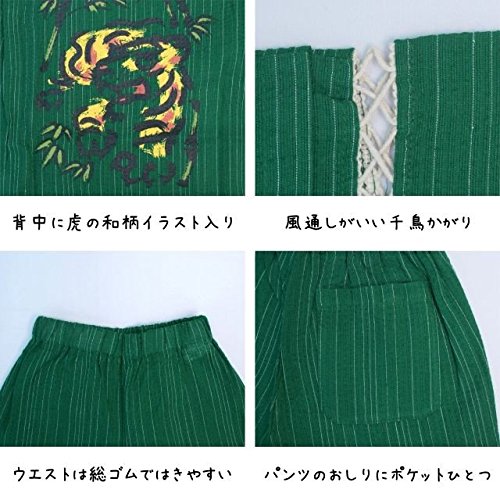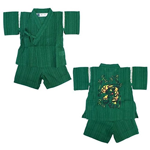 ベビー 甚平 男の子 じんべい 猛虎 とら タイガー柄 和柄 綿100% じんべえ 上下組 グリーン 80