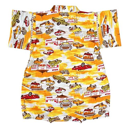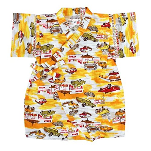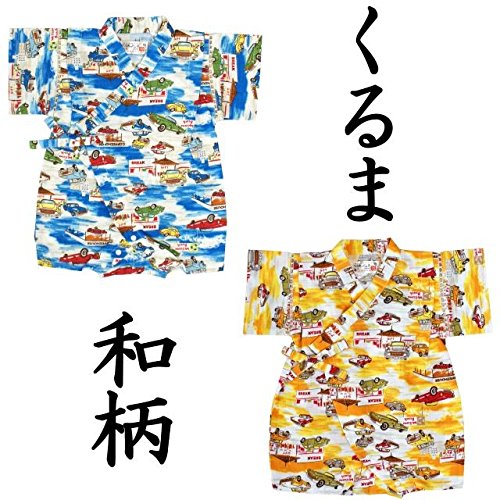ベビー 甚平 男の子 じんべい くるま柄 日本製生地 和柄 綿100% グレコ ロンパス イエロー 70