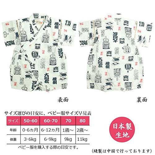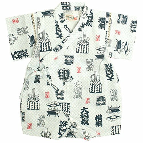 ベビー 甚平 男の子 じんべい 相撲柄 日本製生地 和柄 綿100% ロンパス ベビー服 相撲-白-9758 80cm