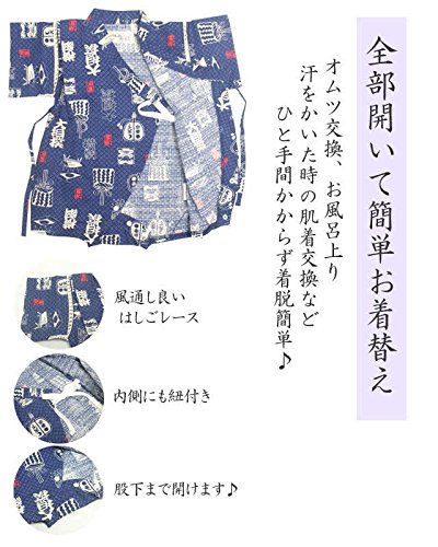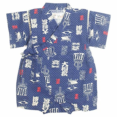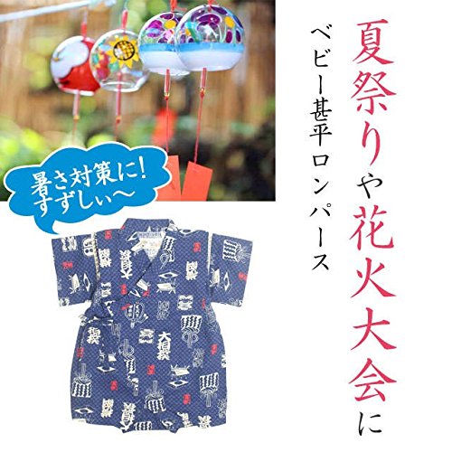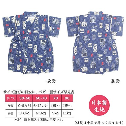 ベビー 甚平 男の子 じんべい 相撲柄 日本製生地 和柄 綿100% ロンパス ベビー服 相撲-紺-9758 80cm