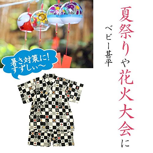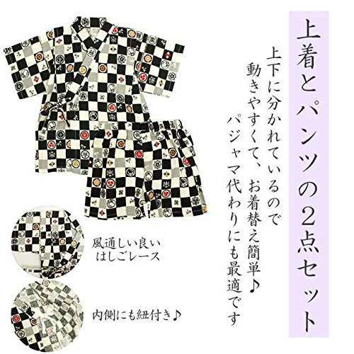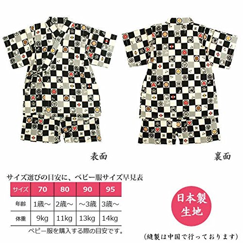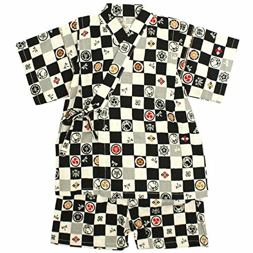 ベビー 甚平 男の子 じんべい 市松家紋柄 日本製生地 和柄 綿100% スーツ上下 ベビー服 市松-黒-9796 90cm