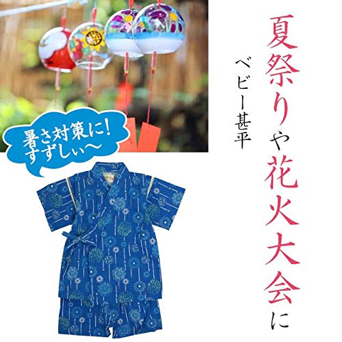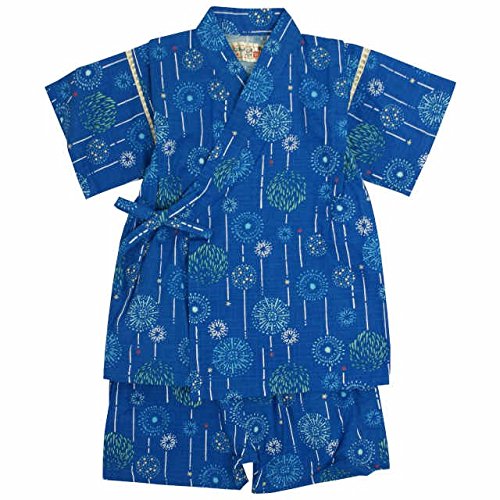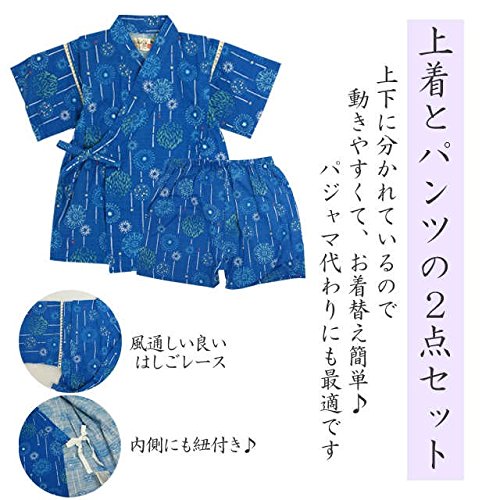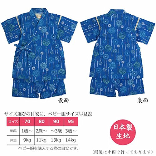 ベビー 甚平 男の子 じんべい 花火柄 日本製生地 和柄 綿100% スーツ上下 ベビー服 花火-青-1020 95cm