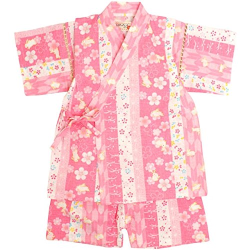 ベビー 甚平 女の子 じんべい うさぎ柄 日本製生地 和柄 綿100% 上下 ベビー服 うさぎ-ピンク-9808 90cm