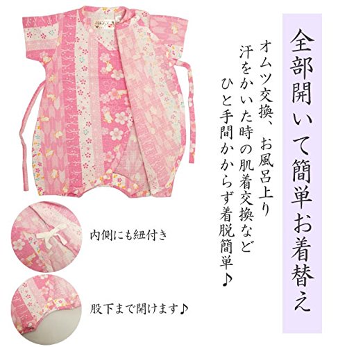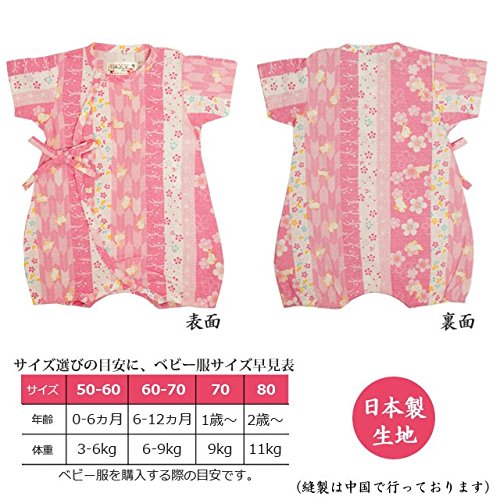 ベビー 甚平 女の子 じんべい 日本製生地 綿100% ロンパース ベビー服 うさぎ うさぎ-ピンク-9751 50-60cm