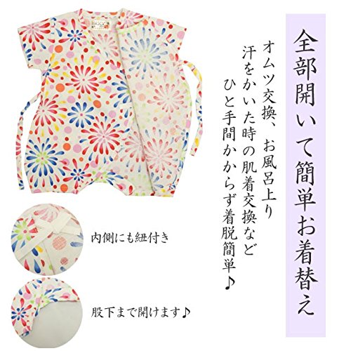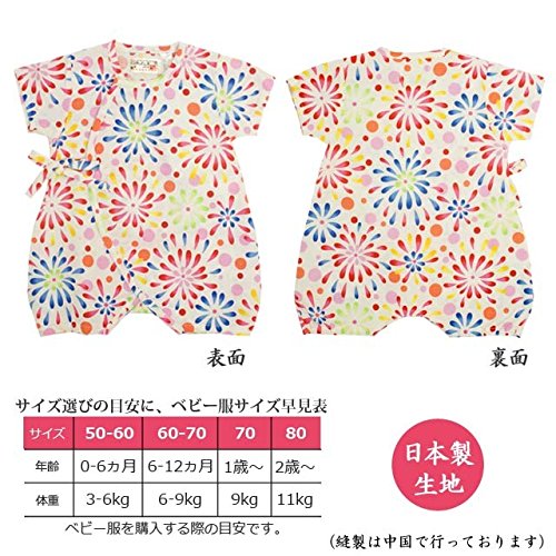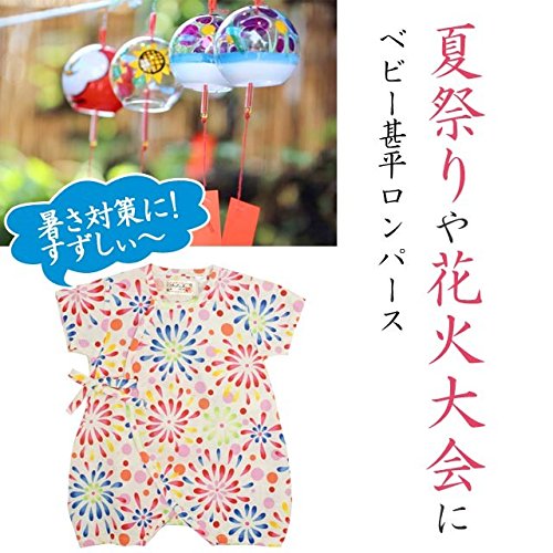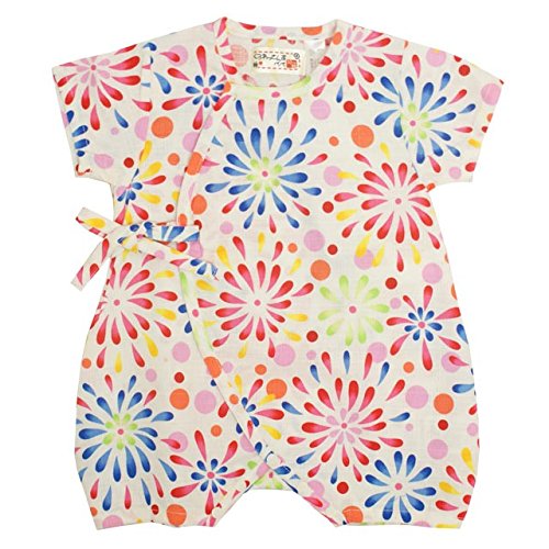 ベビー 甚平 女の子 じんべい 日本製生地 綿100% ロンパース ベビー服 花火柄 花火-白-1013 50-60cm