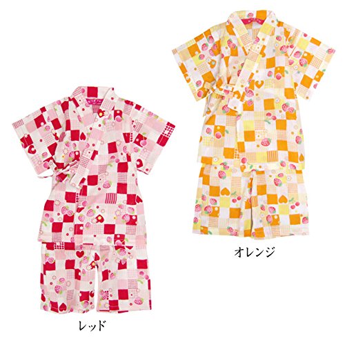 甚平 ベビー 女の子 綿100% いちご柄 じんべい スーツ上下 祭 子供甚平 オレンジ 90cm