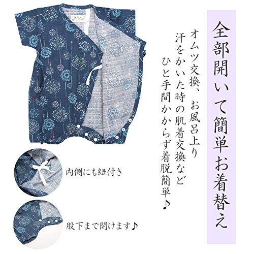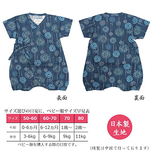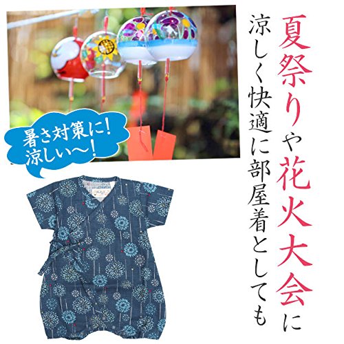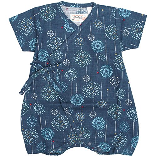 甚平 ロンパース ベビー 新生児 男の子 綿100% 日本製生地 グレコ 花火/紺-9887 50-60cm