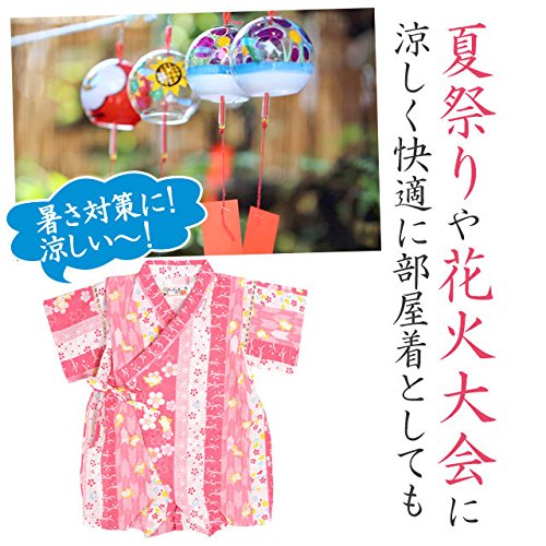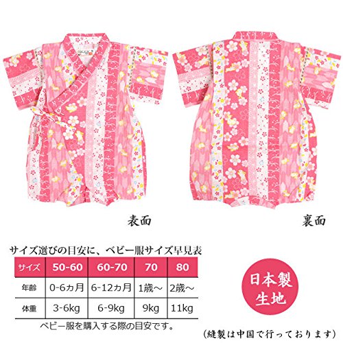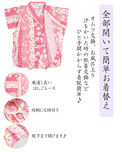 甚平 ロンパース ベビー 女の子 綿100% 日本製生地 グレコ カバーオール 縞兎/ピンク-9938 70cm