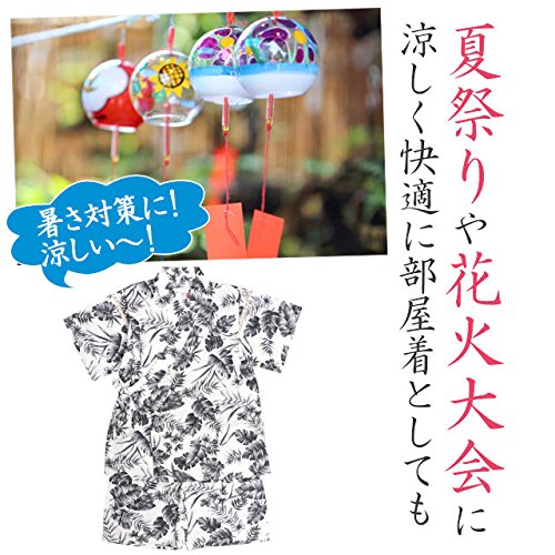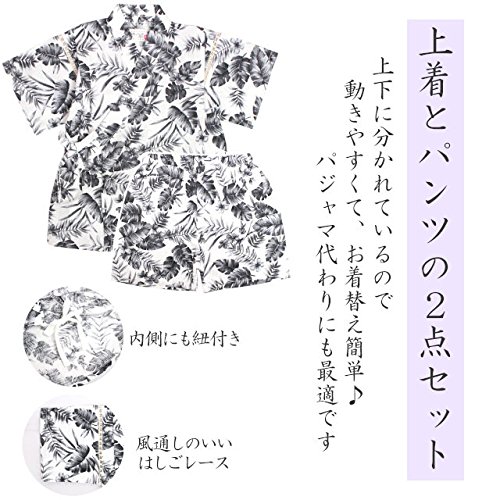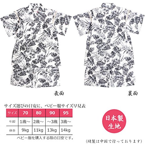 甚平 ベビー 男の子 綿100% 日本製生地 じんべい スーツ上下 祭 子供甚平 ボタニカル/白-9958 95cm