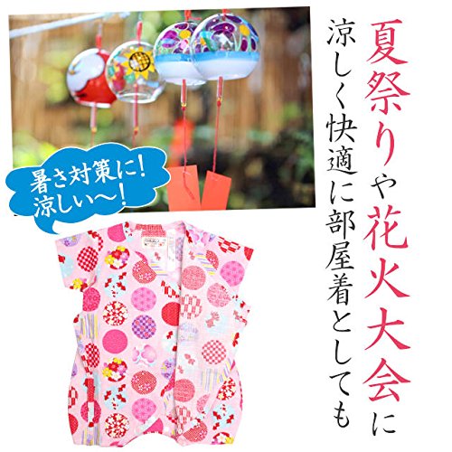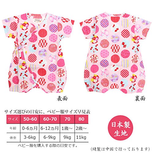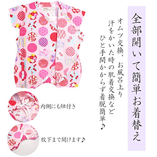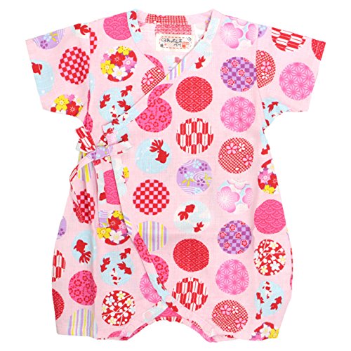 甚平 ロンパース ベビー 新生児 女の子 綿100% 日本製生地 グレコ 水玉/ピンク-9911 60-70cm