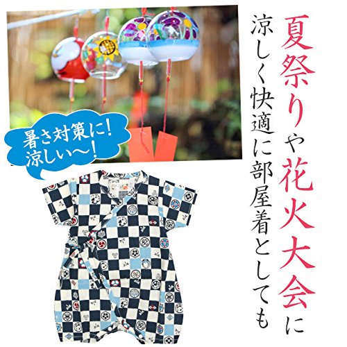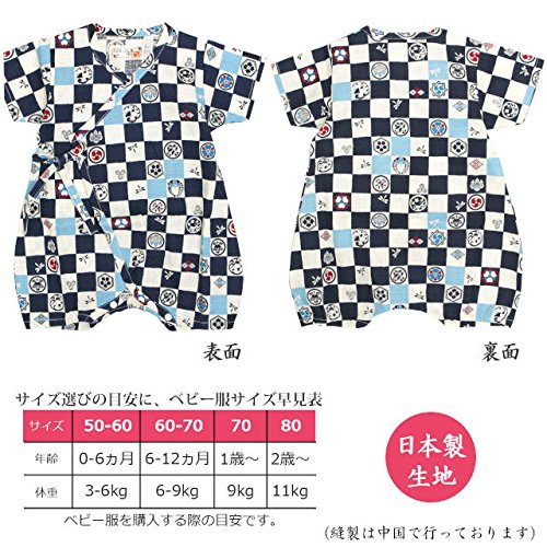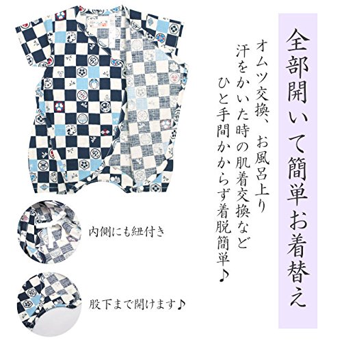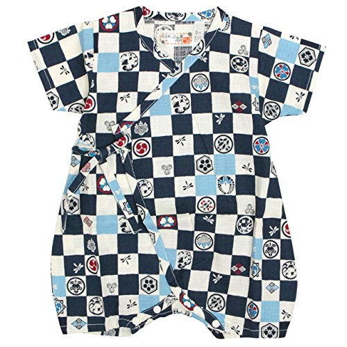 甚平 ロンパース ベビー 新生児 男の子 綿100% 日本製生地 グレコ 市松家紋/紺-9897 60-70cm