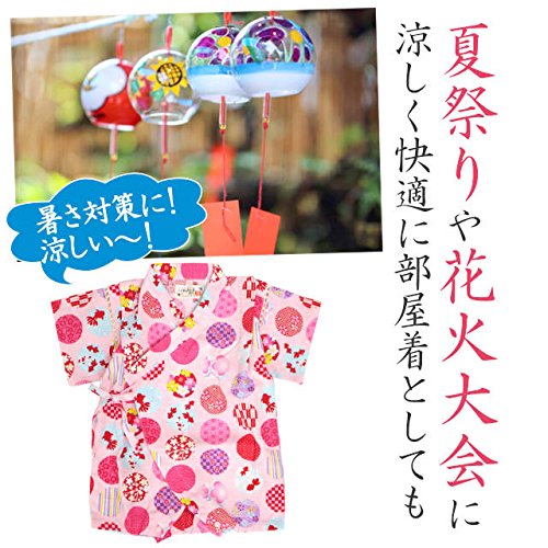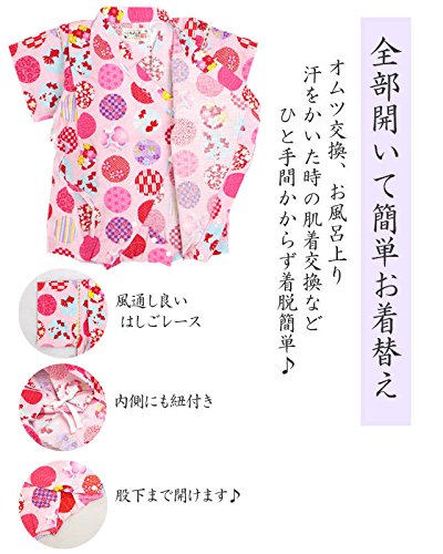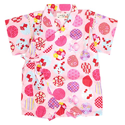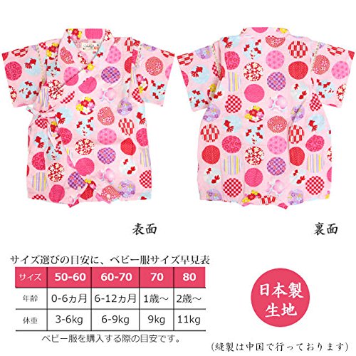 甚平 ロンパース ベビー 女の子 綿100% 日本製生地 グレコ カバーオール 水玉/ピンク-9943 80cm