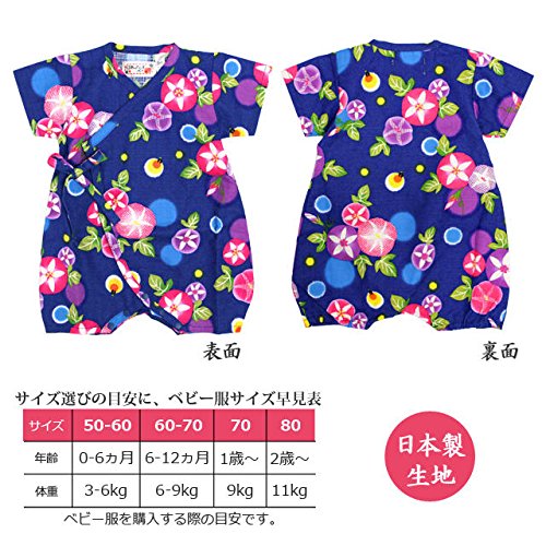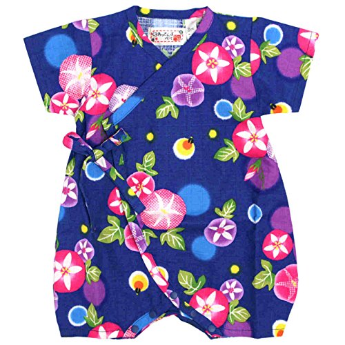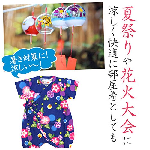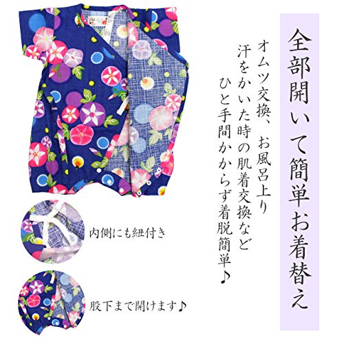 甚平 ロンパース ベビー 新生児 女の子 綿100% 日本製生地 グレコ 朝顔/紺-9915 60-70cm