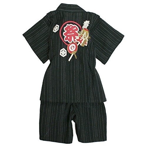 甚平 ベビー 男の子 綿100% しじら織り じんべい スーツ上下 子供甚平 黒 95cm