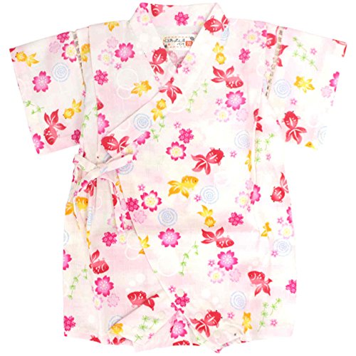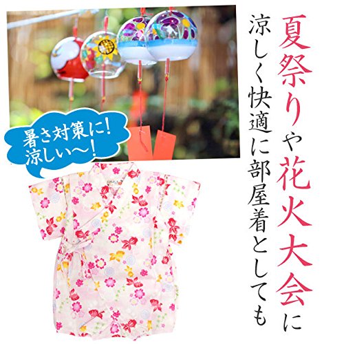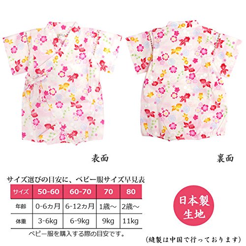 甚平 ロンパース ベビー 女の子 綿100% 日本製生地 グレコ カバーオール 桜金魚/白-9944 80cm